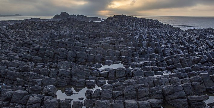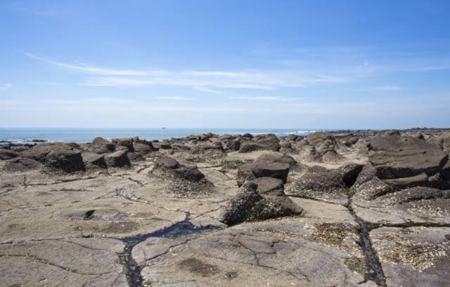 白塘湾古火山口景区位于福建省漳州市龙海市隆教乡白塘村,其形状似一个朝天的椭圆形喇叭口,开口处顶端直径50米,底部深3米,潮涨水淹,潮退口现。火山颈、火山口、喷发相、溢处相等火山活动的形迹十分完整和清晰,地表上由岩浆形成的六方柱状节理玄武岩,以及西瓜状,流纹状,枕状节理玄武岩,呈奇特壮丽的景观,被地质学家誉为“中外罕见的古火山博物馆”和“海底兵马佣”。