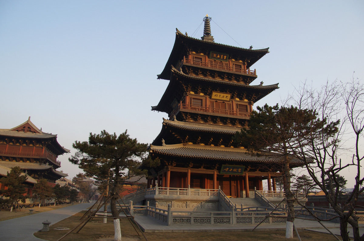 位于大同市中心的大西街,是依据佛教的七大宗之一——华严宗的经典《华严经》而修建的,故名华严寺。寺内主要建筑有大雄宝殿(上寺)和薄伽教藏殿(下寺),其建筑、塑像、壁画、壁藏、海藻等,都是我国辽代艺术的典范。