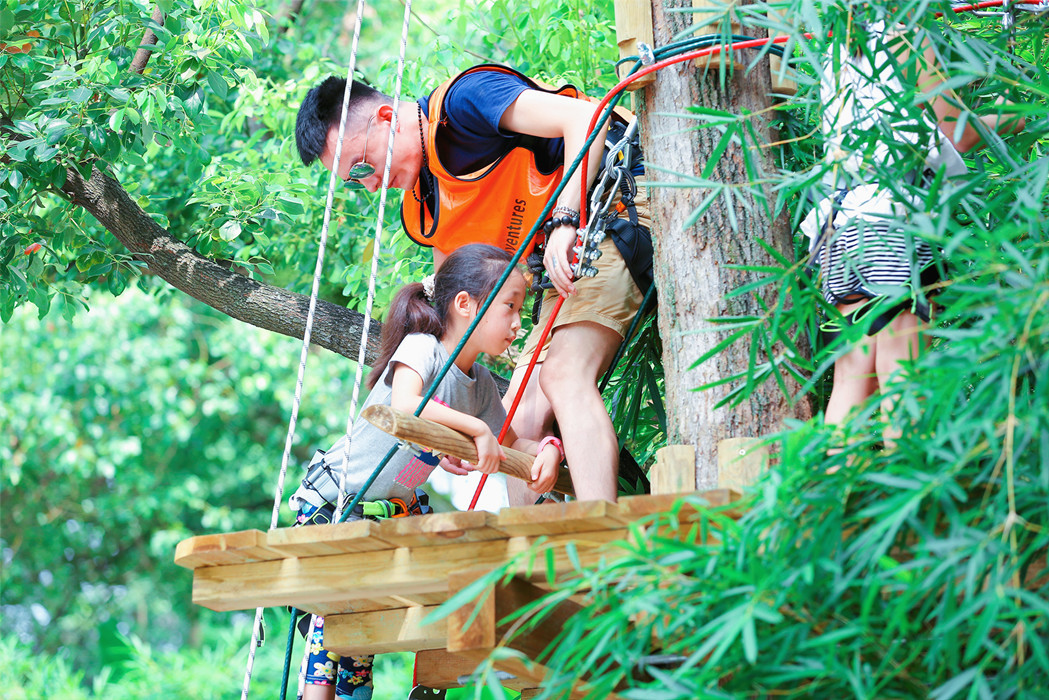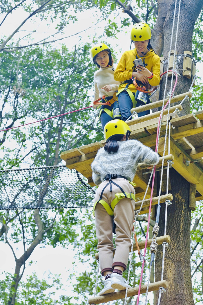 3、建议游客选择适合自身的体验线路,先易后难。该项目为高空户外运动项目,未成年者体验树上活动时,建议家长陪同。