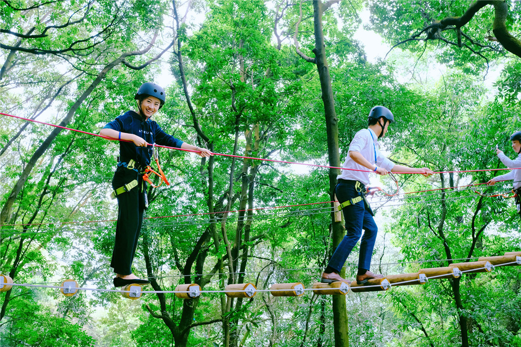 成都飞越丛林,感受森林与自然的美好,有多种趣味路线等你体验!适合多个年龄段,去挑战高空悬梁、网道、木桶…体验高空穿梭于大自然的那种新奇感受!