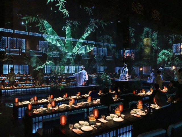 科技赋能传统:在《清明上河・宋宴》的演出中,运用裸眼3D、纱幕投影等技术动态呈现万国来朝、活字印刷、瑞鹤翱翔等场景,增强视觉冲击力,让观众在一餐一宴中尽览大宋 “雅俗共赏” 的清欢美学。