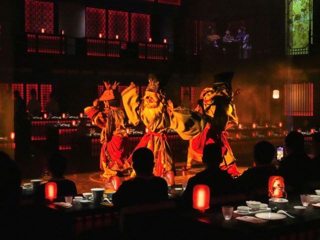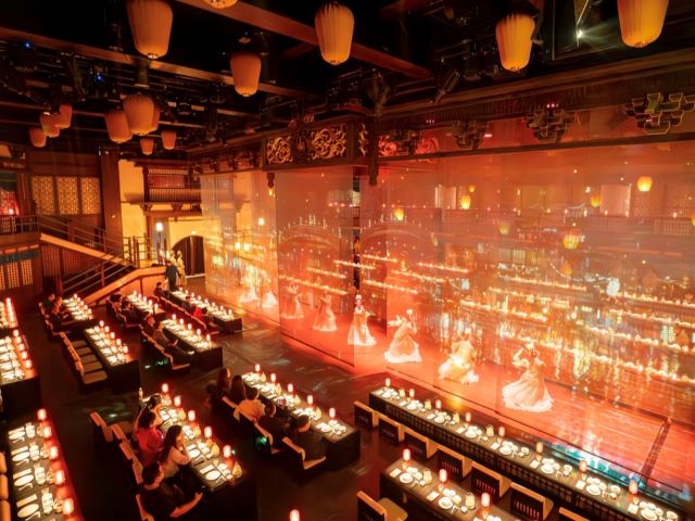 沉浸式文化体验:在《清明上河・宋宴》的演出中,结合专业舞美、光影技术,还原宋代宴饮场景。游客可边用餐边欣赏舞蹈、杂耍、魔术等表演,甚至与扮演李清照、张择端等历史人物的演员互动,实现“入画”体验。