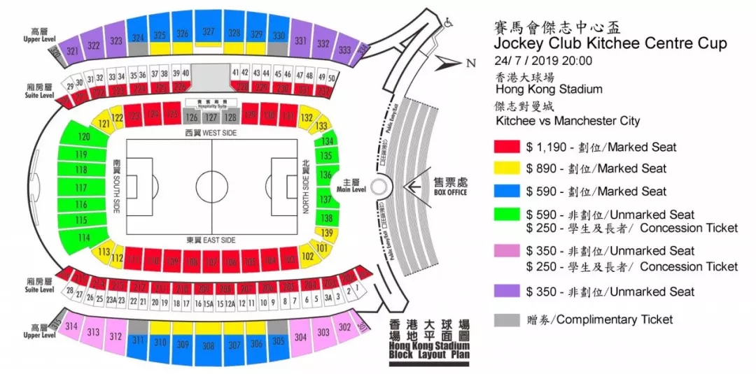 今年四月份,曼城俱乐部宣布将于今年香港大球场(香港扫杆埔东院道55号)举办的香港赛马会杰志中心杯上对抗港超联劲旅杰志,瞬间这个消息炸开了锅,让几乎所有的球迷为之期待!2019香港赛马会杰志中心杯,07-24,杰志VS曼城的精彩角逐即将上演,那么此次赛事的详情、门票价格以及座位图都分别是什么?我们来看看吧!