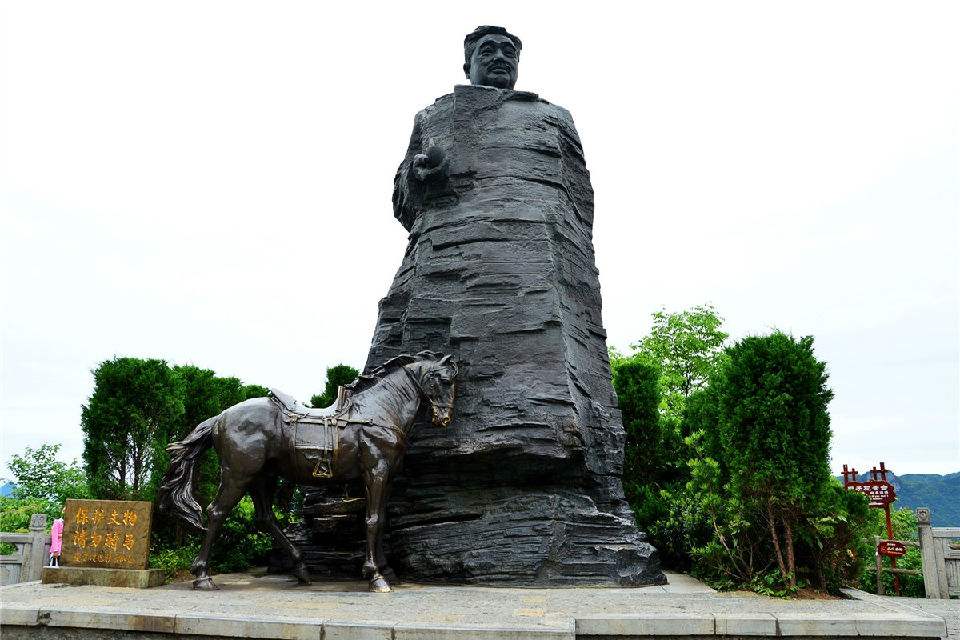 贺龙身着军大衣,那根曾伴他叱咤风云的大烟斗握在手中,那匹曾仰天长啸的大白马依偎在膝旁,天风吹衣,目光如炬,整个造型、色彩气韵,就连军大衣上的皱褶都和砂岩峰林浑然一体,与这里的三千奇峰一道顶天立地,栉风沐雨。这是我国近百年塑造的最大的一尊铜像。非常值得大家去看一下,真的很雄伟!!很厉害!