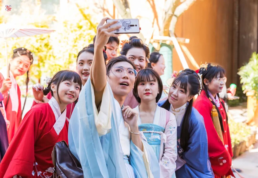 在现代的场景中很少能看到一个较完整的古风景致,在这里从装潢到服饰都考虑到了融入国风的元素,在摄影馆中人们可以看到许多前来打卡的游人,而身着汉服的男男女女是此行最为靓丽的风景线,及腰长发、飘逸裙摆、婀娜身姿惹眼无比。
