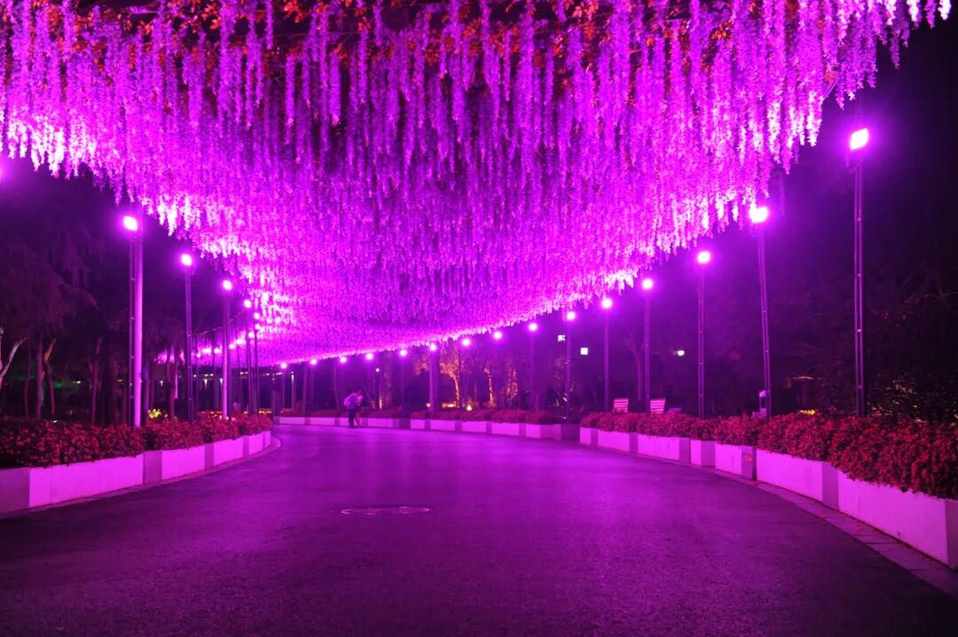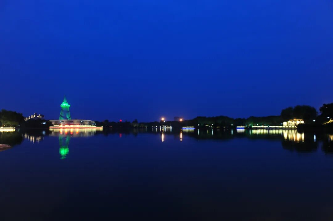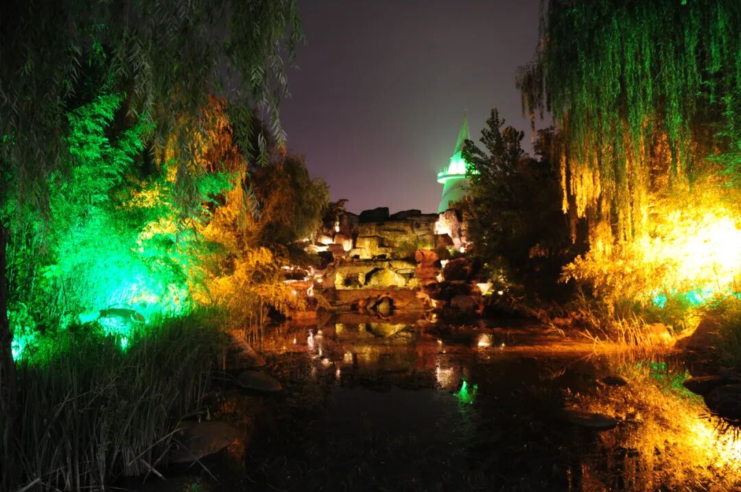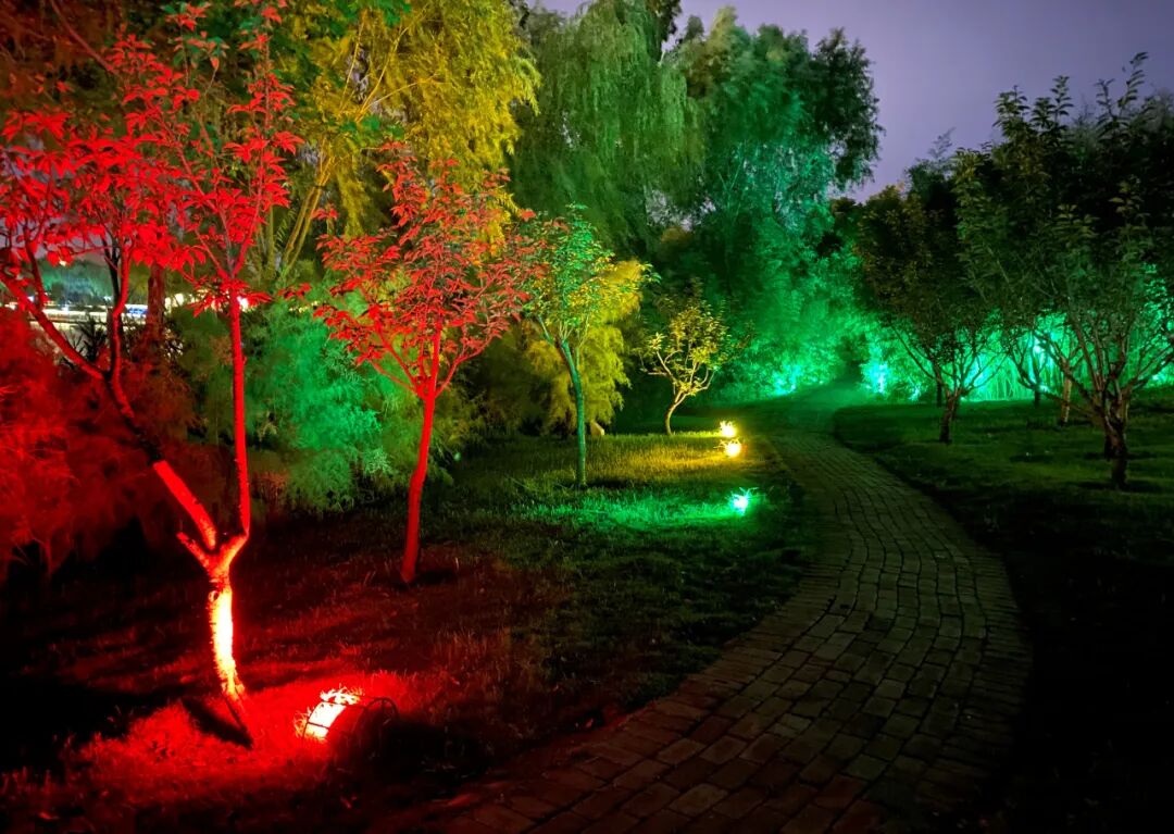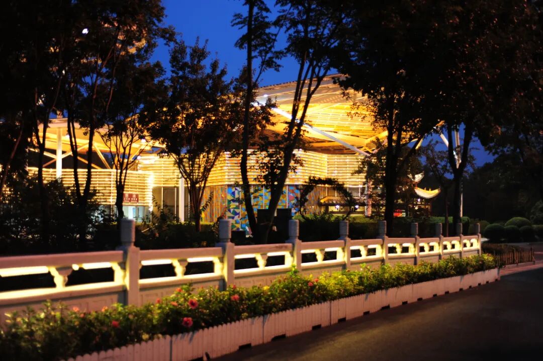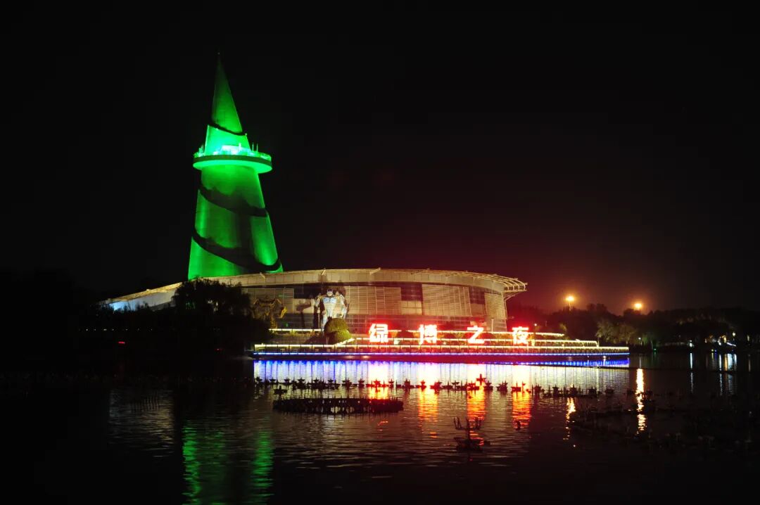 落日余晖后,绿博园的灯光开启