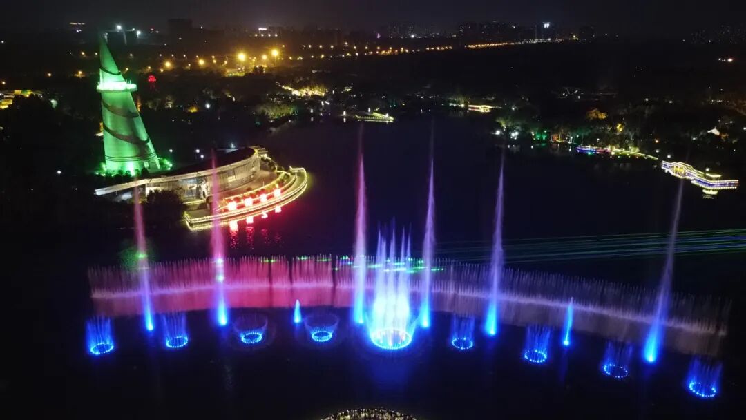 20:00—20:30,夜色闪耀,声光喷泉宛如鱼龙舞