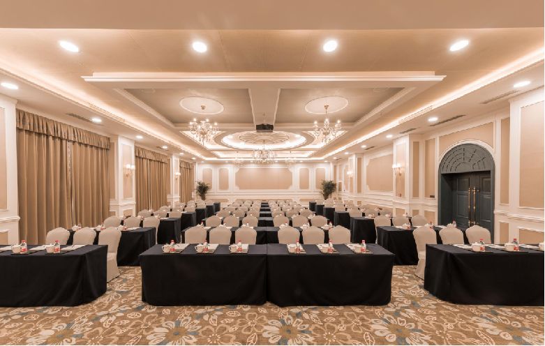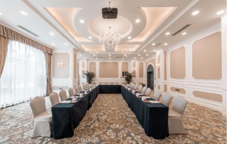 345平方米无柱式会议大厅,配备有20平方米高清大屏及先进的视听设备,高速宽带和无线上网接入,可满足您不同会议及宴会的需求。