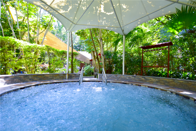 大型露天温泉区精心打造36个大小/风格/功能各异、极富养生特色的温泉浴池。既有运动型戏水池、天然温泉池,又有结合中医与温泉理疗配成的功能药浴池、水疗温泉池等;还有养生馆、沐足亭、按摩区等。