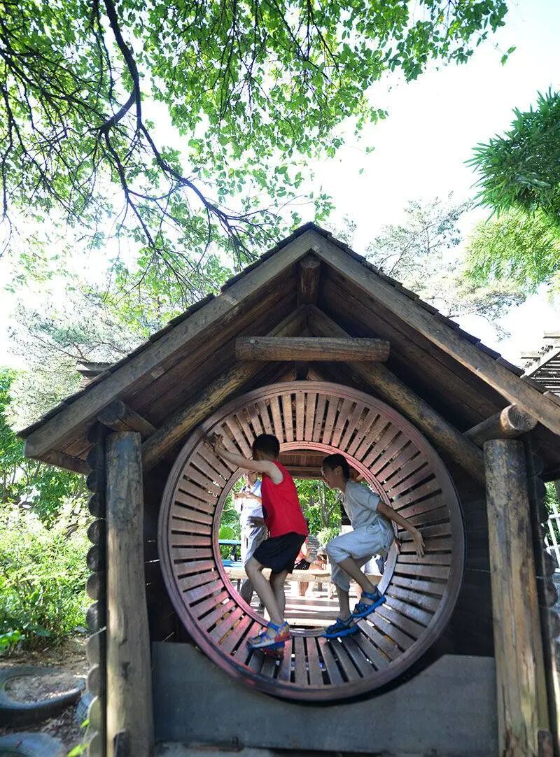 采用全木质结构建造而成的古老而传统的游乐设施,有跷跷板、拉火车、摇滚木屋、绳木、泸定桥、攀爬乐园等各种项目。