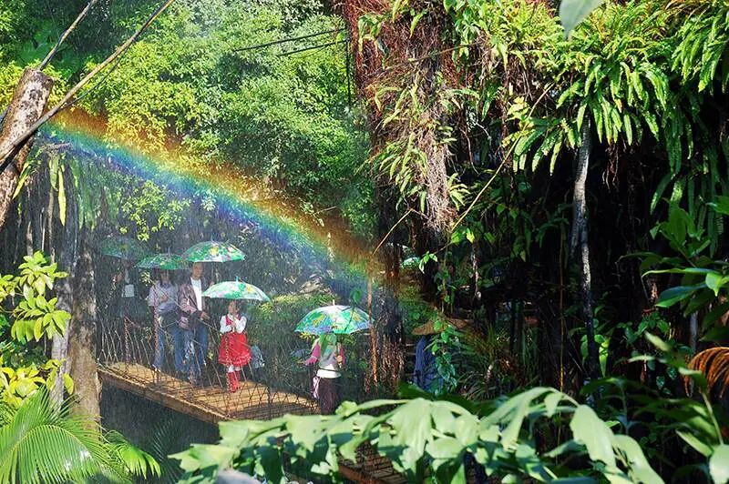 温驯的动物是丛林里可爱的存在,在这里还可以欣赏重达两三百斤的巨骨舌鱼,会捕捉昆虫的猪笼草、婀娜多姿的孔雀,呆萌可爱的竹鼠、交相辉映条条彩虹