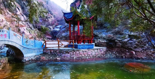 大鸿寨景区,位于河南省许昌市禹州市鸠山镇后地村,是集自然山、水、洞、林为一体的综合性景区。景区占地面积30平方公里,区域内万壑纵横,群山拱围,峰峦叠翠,气象万千,主要景点有簸箕掌、钻天洞、白果树、水帘洞、龙泉寺、烽王台、一线天、过风口、吊桥坳、和尚洞、樊梨花台、老羊山等。