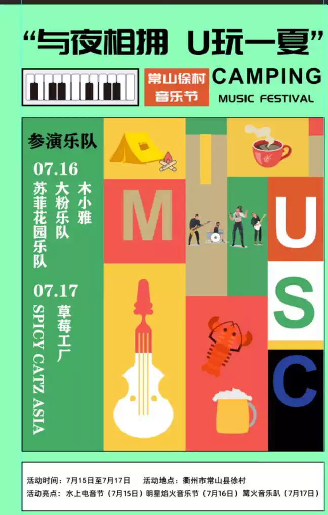 乐动夏天,放肆去野。2022年7月15日-2022年7月17日,“与夜相拥·U玩一夏”常山徐村音乐节,坐标浙江常山徐村大草坪,水上电音&篝火轰趴,能量值MAX的狂欢PARTY ,唤醒血液里的热力和感动,是时候让音乐节释放躁动的灵魂了!