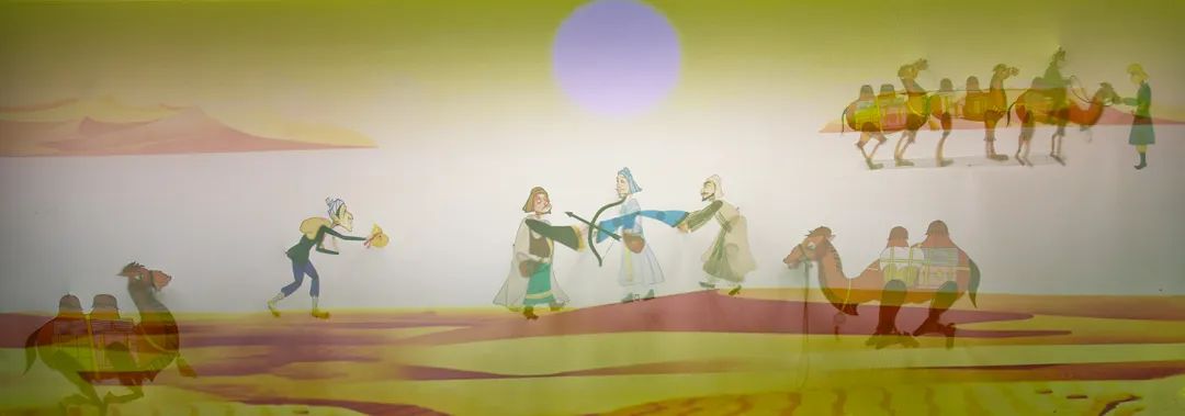 3、灯光技术突破革新,助攻敦煌色彩呈现,技术人员打破了皮影灯白色光的固有模式,使用有色和可调控分区光源,使画面呈现达到完美平衡。