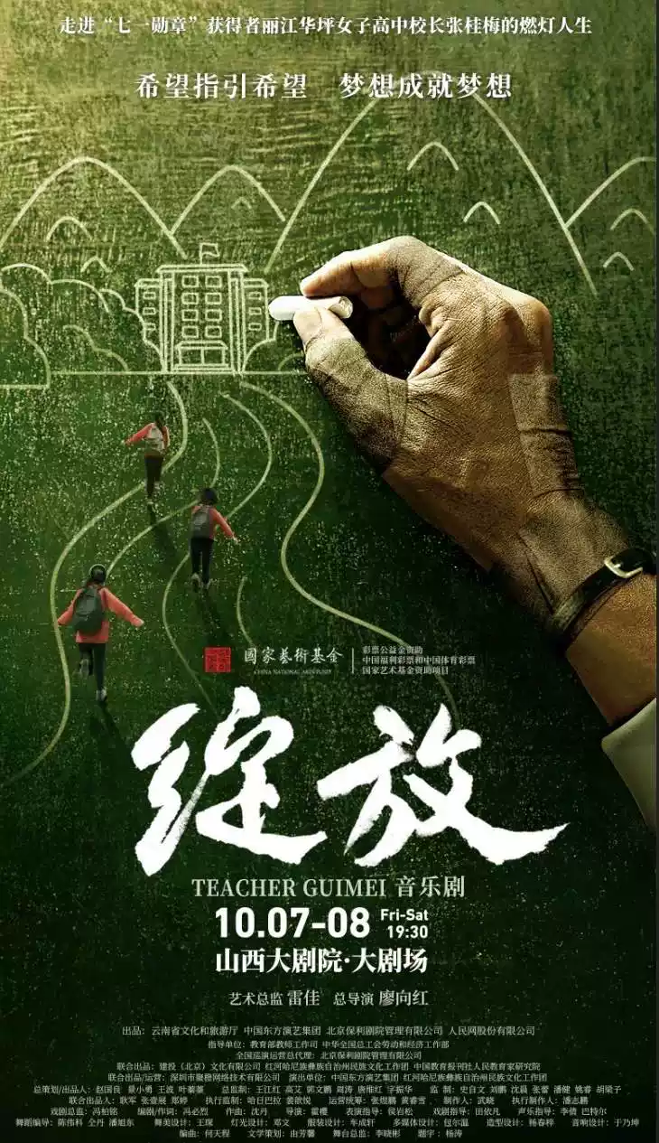 师者桂梅,立德圆梦,音乐剧《绽放》紧扣张桂梅一生的两大关键词:“奉献”与“改变”,根据真人真事改编,讲述了她扎根云南山区40余年,推动创建了中国一所免费女子高中,帮助近2000位女孩圆梦大学校园,为学生留住了知识改变命运的机会,用身心与大爱捍卫了每一个女孩做梦的权利。