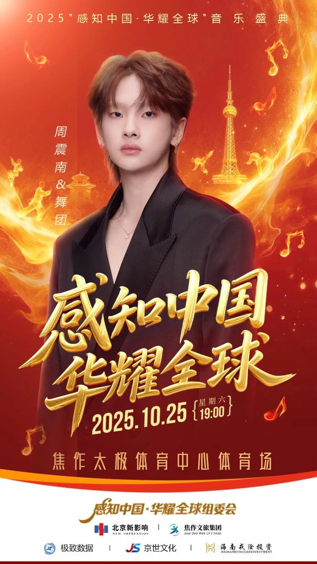 10月25日,2025“感知中国·华耀全球”音乐盛典焦作站即将举行,潘玮柏、周震南、白举纲、隔壁老樊豪华阵容来袭,多元风格的曲目,震撼心灵的舞台,每一位观众都将沉醉其中,享受独有的魅力旅程!