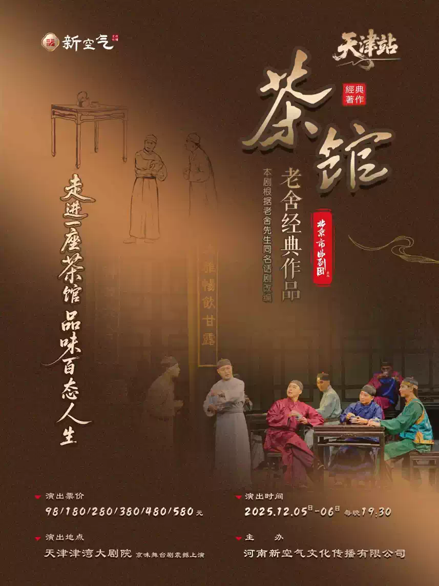 最新消息,老舍经典作品《茶馆》-天津站定档12月5日-6日在津湾大剧院上演,经典戏幕的拉开,展现如何魅力非凡的茶馆故事?千万不要错过!以下是2025老舍经典作品《茶馆》天津站介绍及门票信息。