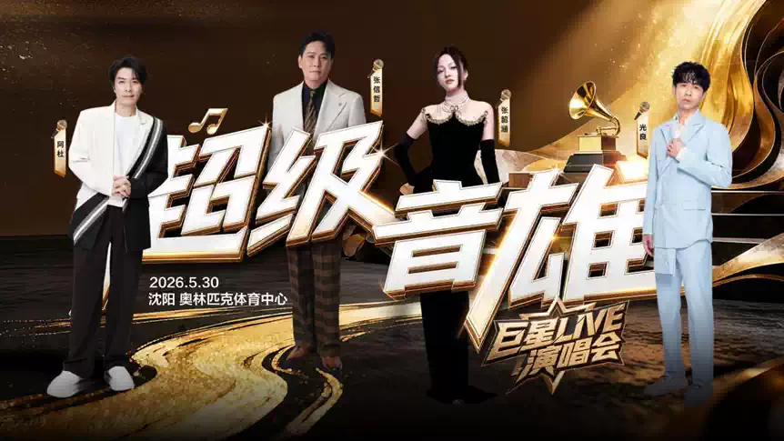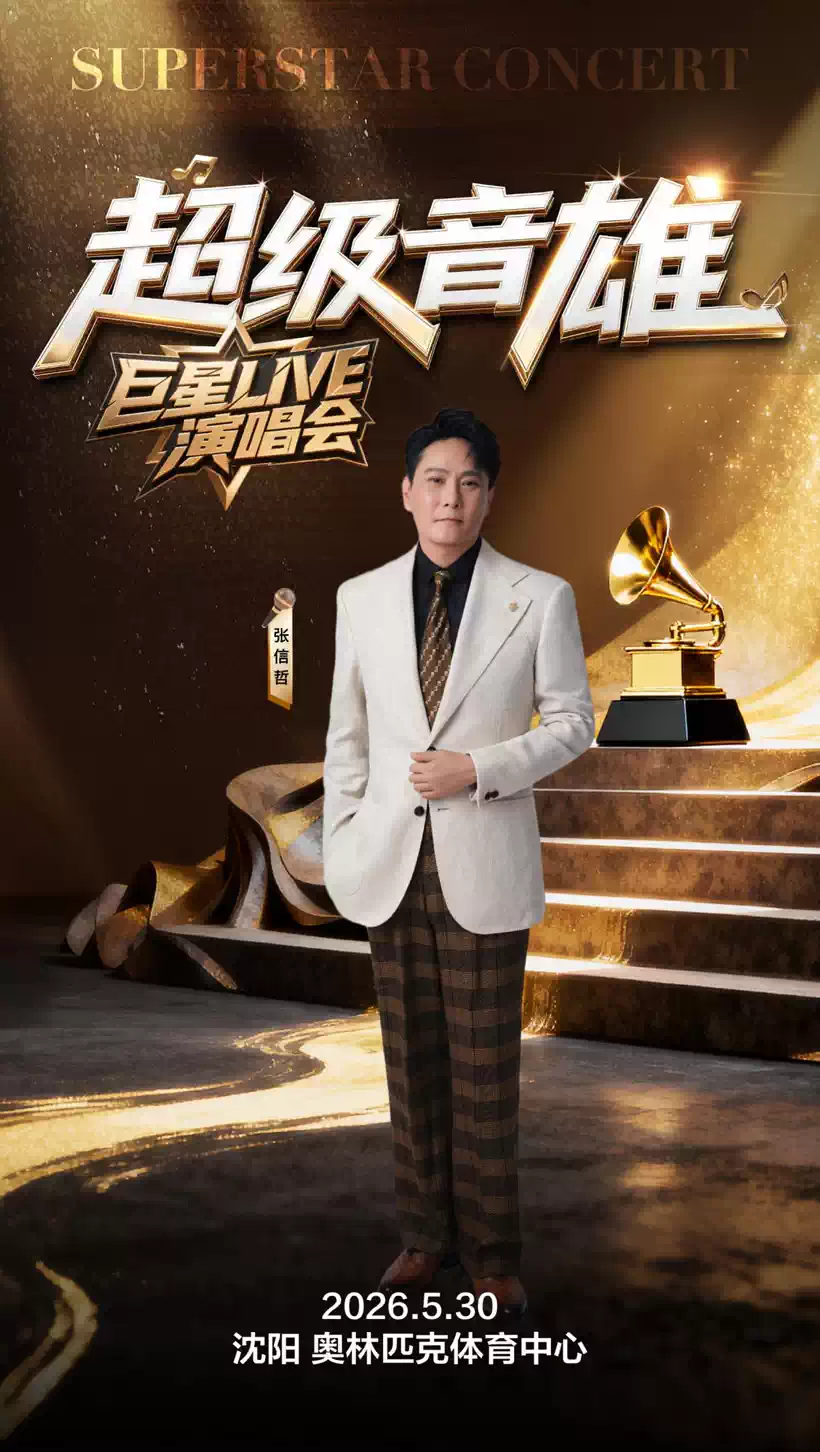 重磅好消息,2026年5月30日,张信哲、张韶涵、光良、阿杜四位华语乐坛巨星齐聚沈阳奥体中心体育场,为乐迷带来一场超级音雄巨星LIVE演唱会。“音”雄阵容高燃集结,顶级舞美“华”流璀璨,这必将是一场精彩绝伦的“超级音雄”视听盛宴。