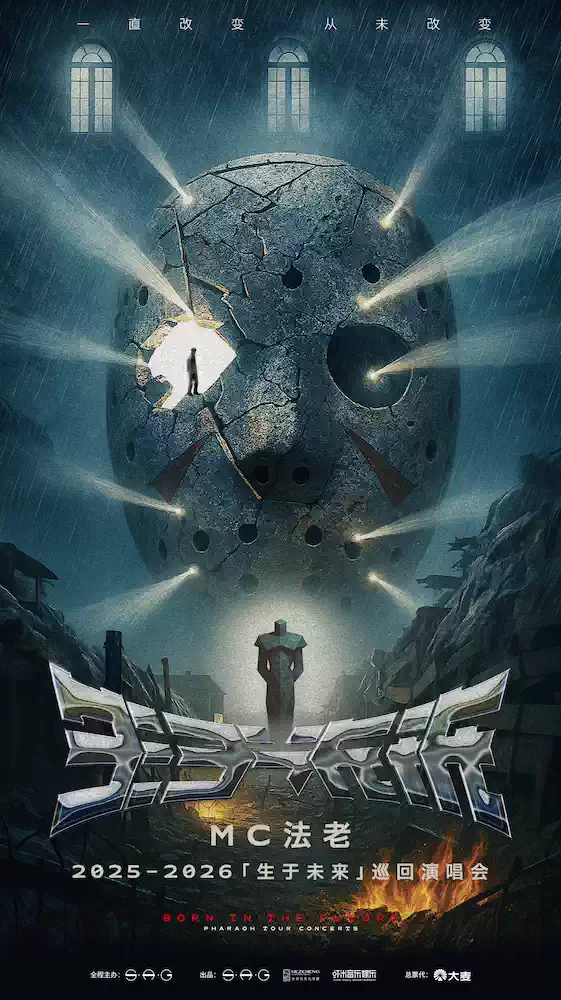 2025年,法老迎来了说唱生涯首轮场馆级巡回演唱会,主题同名「生于未来」,从过去走向未来,而未来也终究会成为过去,不会改变的是我们必将那一抹理想主义的年轻浪漫与诗意浇筑在中文说唱的心脏上。