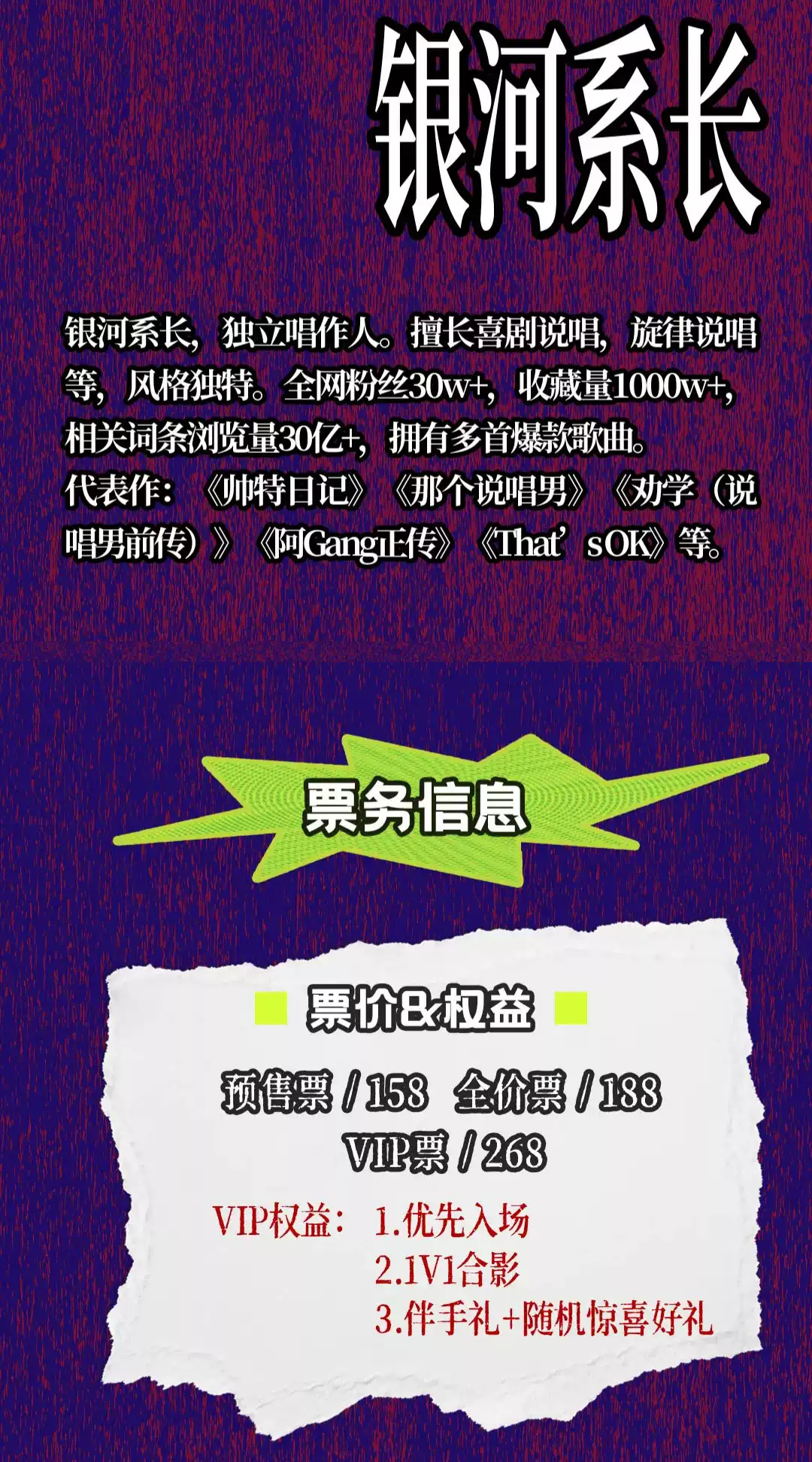 2026银河系长郑州巡演将于2026年5月16日在郑州7LIVEHOUSE+上演,下面小编为大家详细介绍一下具体的银河系长郑州巡演门票价格、时间、地点及演出详情。