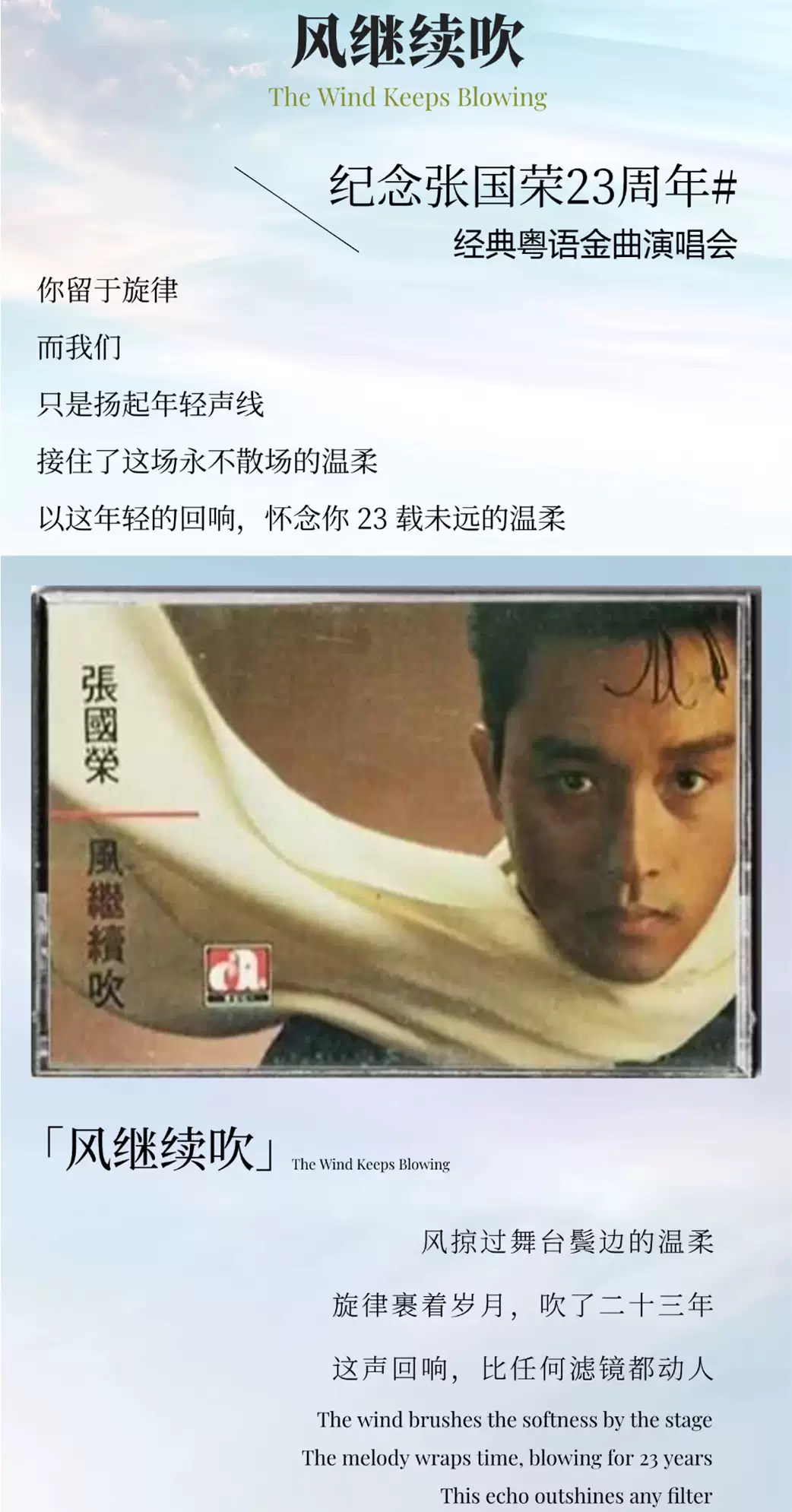 来《风继续吹》致敬张国荣23周年专场港粤金曲演唱会广州站,一起致敬经典。