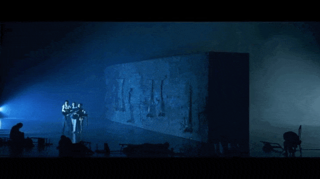 舞台上,巨大的“背影墙”犹如一部徐徐展开的立体书卷,在360度旋转中构建起虚实相生的叙事空间。