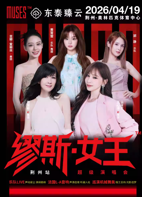 2026年4月19日,在荆州·奥林匹克体育中心举办一场属于荆州人的视听狂欢即将启幕!2026荆州缪斯女王超级演唱会,王心凌、周慧敏、黄霄雲、吉娜·爱丽丝、郭静……都要在荆州轮番开唱,你想去听谁?