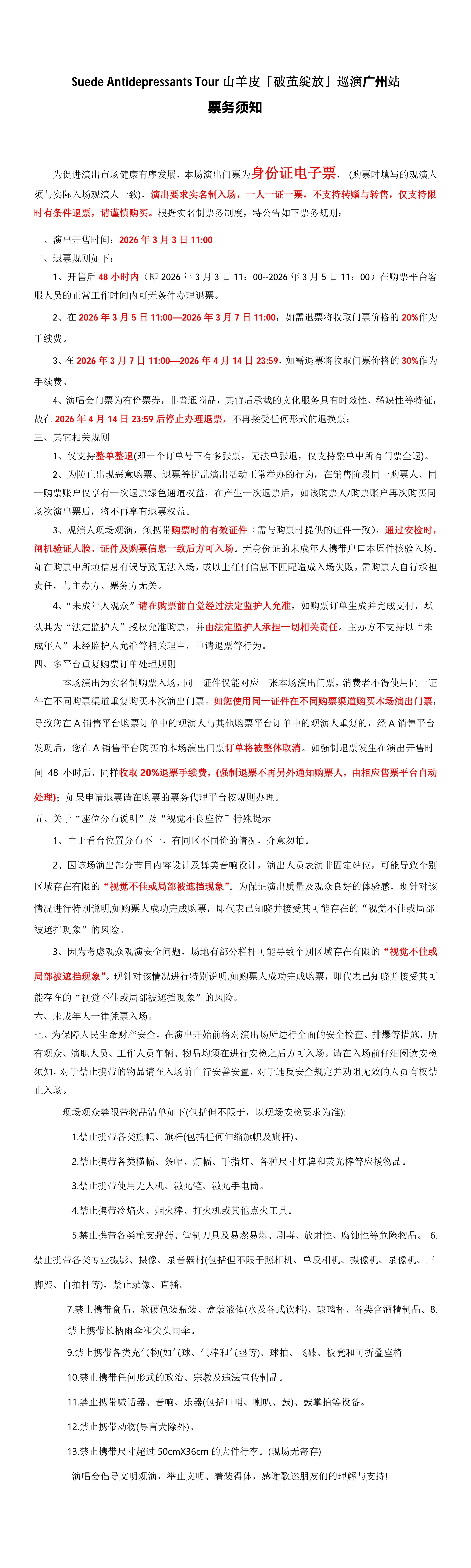 2026suede山羊皮乐队广州演唱会时间、地点(门票价格+购票指南)