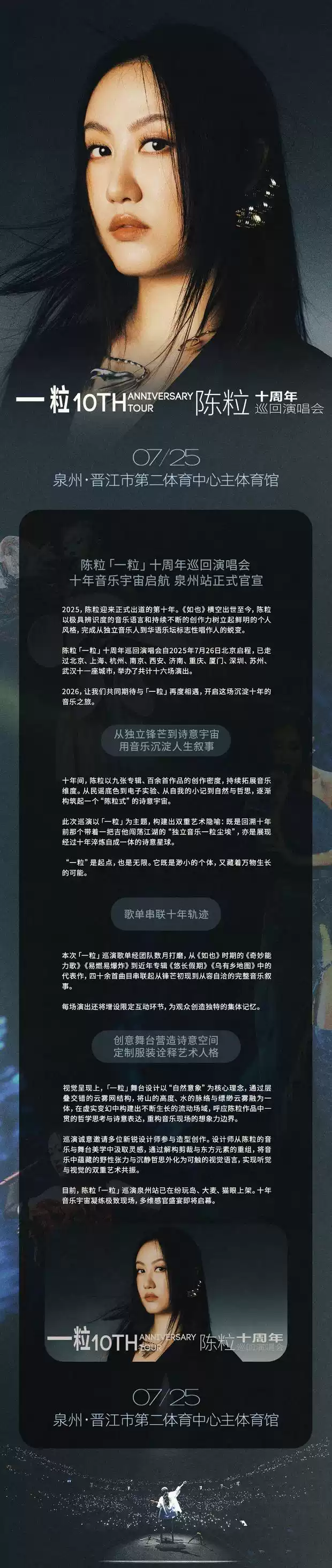 陈粒泉州演唱会2026最新:时间+地点+购票入口