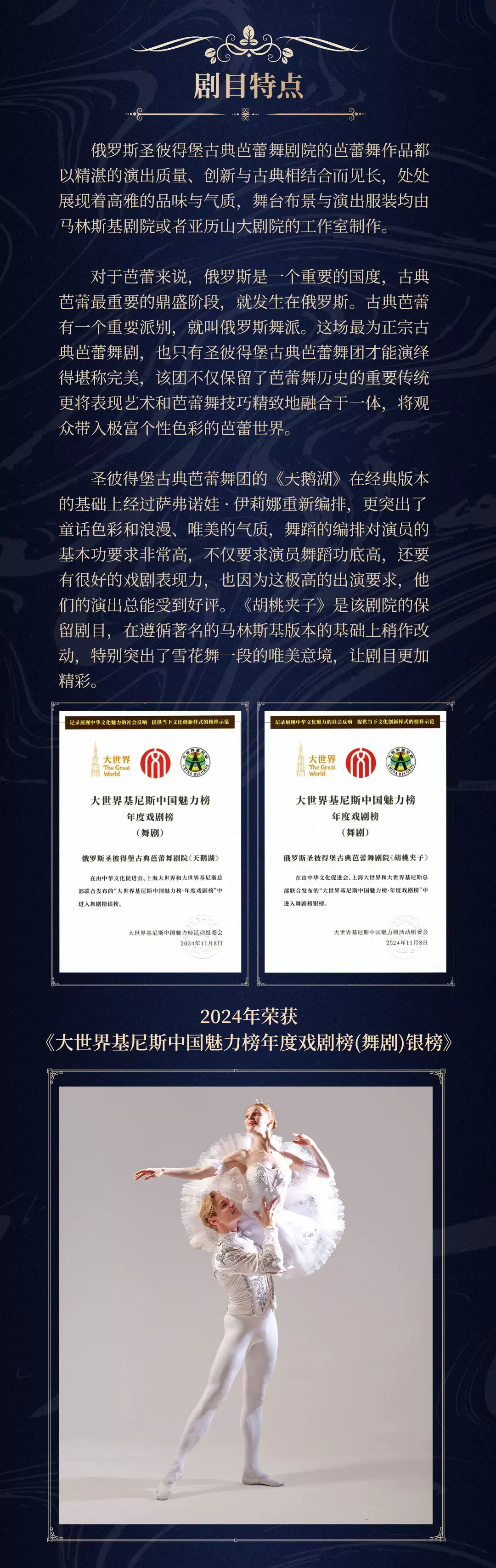 - 圣彼得堡古典芭蕾舞剧院《天鹅湖》《胡桃夹子》上海站
