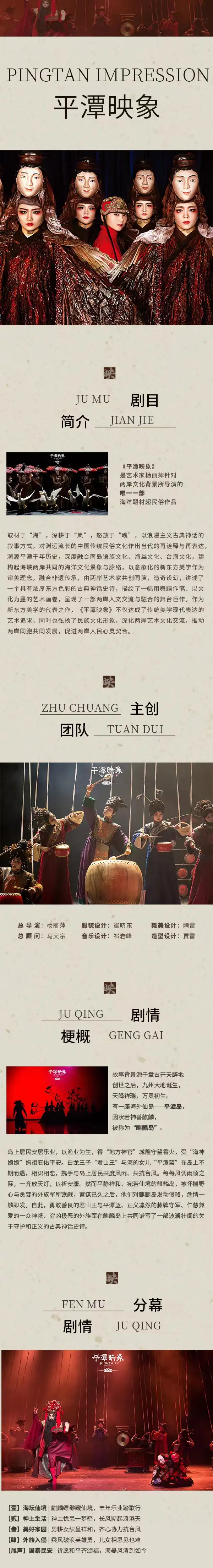汇聚业内名流的主创团队2016年8月成立,所有人员全身心投入制作至今,三年时间过去了。说长不长,说短不短的时间里,发生了很多有趣的故事,经历了一些感人的记事。唯独那份期待没有变,大型多媒体舞台剧《平潭映象》魅力风采。