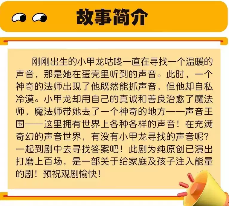一起到剧中去寻找答案吧!本剧已演出打磨上千场,有互动、有欢乐、有感动绝对让全家都终身难忘!