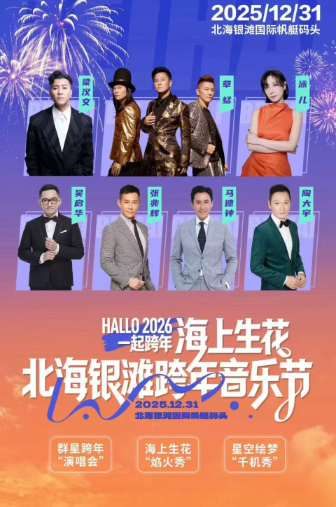 演出时间 2025-12-31 周三 18:30 演出场馆 北海银滩国际帆艇码头 演出时长 以现场为准 儿童入场提示 儿童一律凭成人票入场 演出详情