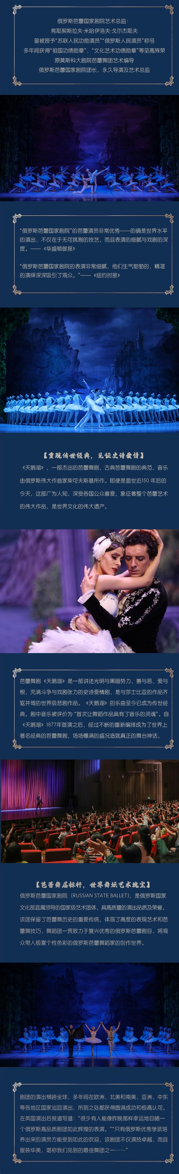 俄罗斯皇家芭蕾舞团被国际媒体誉为当代最卓越的芭蕾舞团之一,也是活跃于国际舞台上的一颗璀璨的明星。俄罗斯皇家芭蕾舞团传承正统的俄罗斯古典芭蕾学派精髓,多年来始终保持俄罗斯芭蕾的传统风格及严谨的台风,并从中探索与发展新的舞蹈形式,舞团代表了俄罗斯古典芭蕾的最高艺术水平,俄罗斯政府更是将俄罗斯“皇家”称号授予他们。