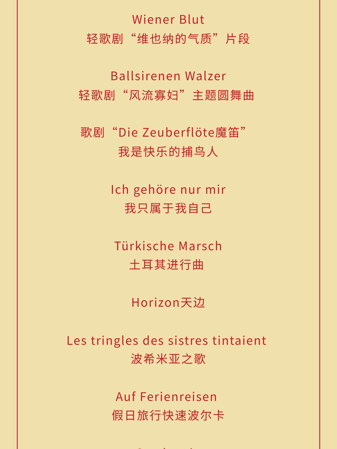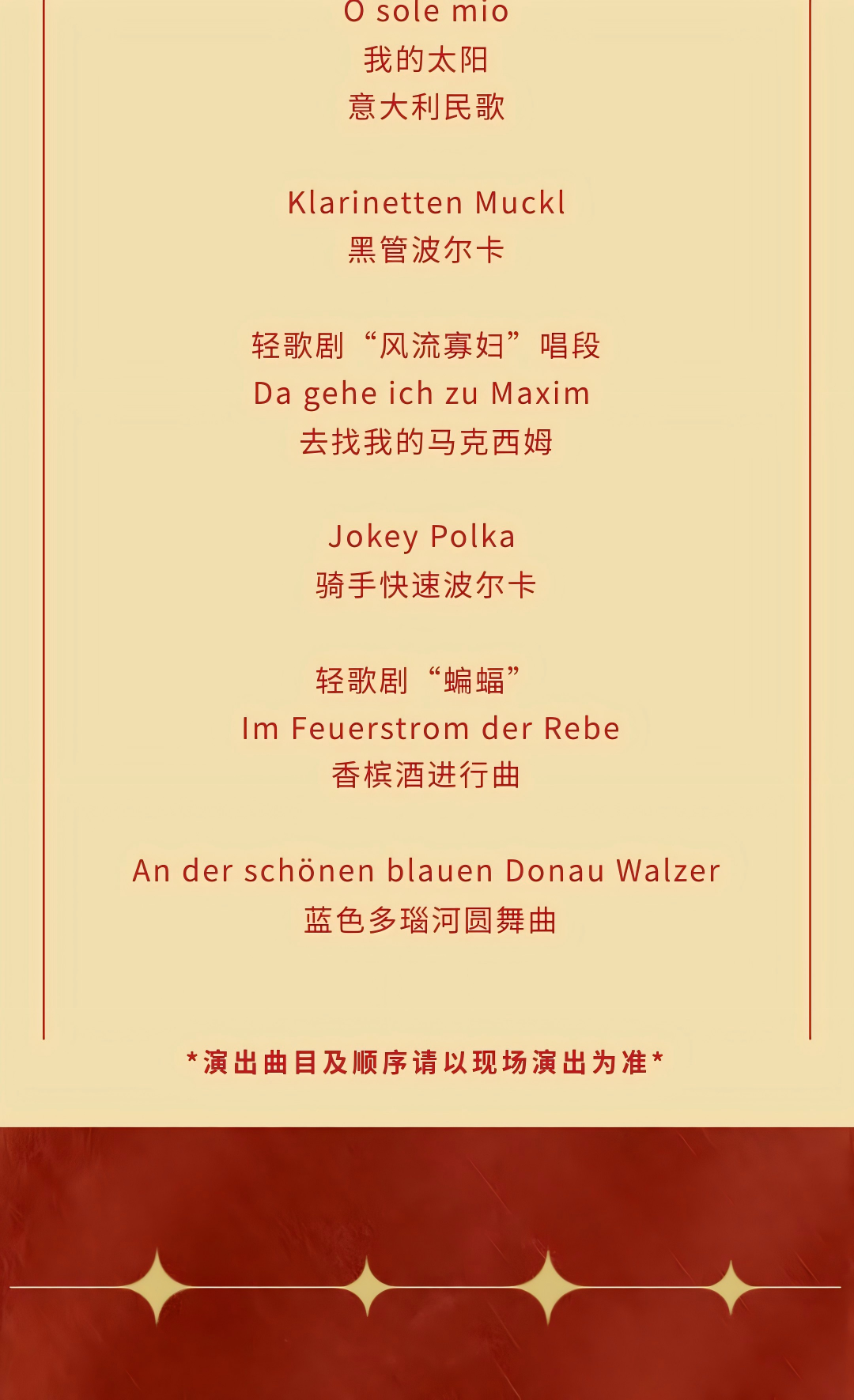 备注:演出曲目以现场为准。1米以上儿童凭票入场,1米以下儿童谢绝进场。