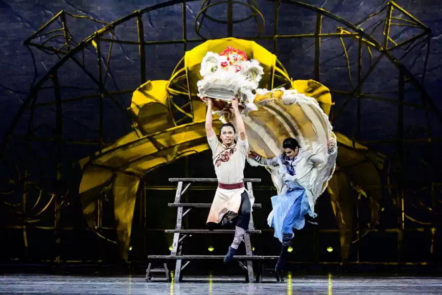 《醒狮》是国内首部以非遗广东醒狮为题材的舞剧。该剧以一百多年前的鸦片战争为故事背景,以三元里抗英起义为高潮爆发点,以今日之醒狮人回望先辈的姿态,开始对百年前历史前尘进行回溯。