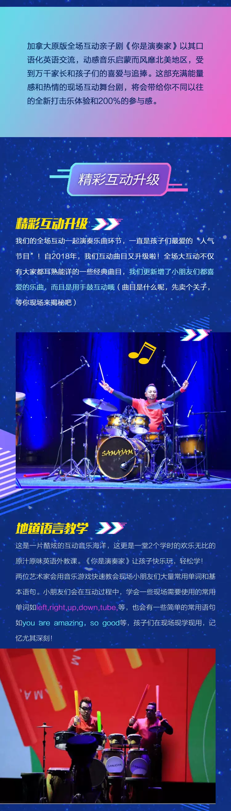 奇幻星空下,超级金贝鼓闪亮登场,更有全新音乐互动等你来体验,来杭州大剧院,加入这场音乐狂欢吧!