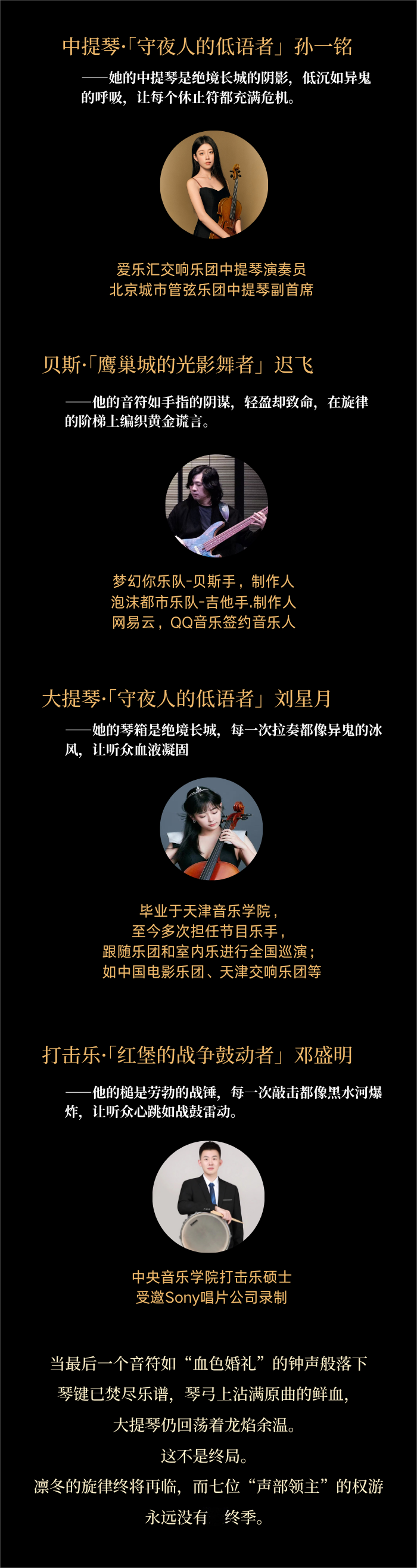 触动心灵时刻,就在Charming Live·燃系音乐现场;从环太平洋 Pacific Rim穿越到冰与火之歌Main Titles,每一个音符都充满无尽的力量,瞬间激活你的使命感,凛冬将至亦激情澎湃;