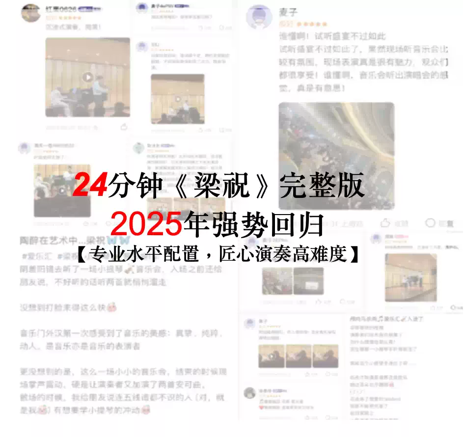整场音乐会除经典的《梁祝》外,还汇聚了十多首国风经典音乐,本场演奏家将用钢琴、小提琴、中提琴、大提琴五重奏的形式为观众们倾情呈现。钢琴、提琴重奏出的或凄婉或急促的曲调,可以让人们忘记曲子之外的世界,人们可以直接感受到音乐形象带来的美感,专注于优美的曲调和震撼的旋律,展现了一场别具一格的音乐盛宴。
