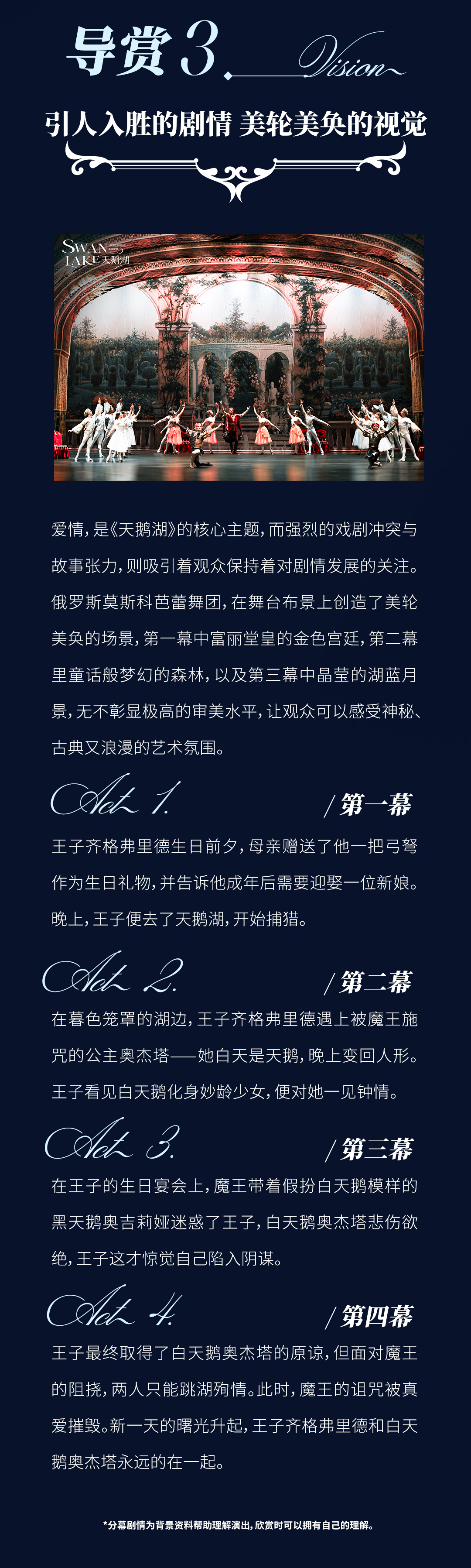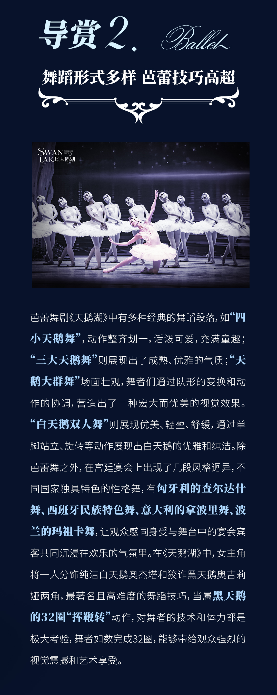 ★芭蕾舞剧《天鹅湖》古典浪漫主义芭蕾舞剧的巅峰作品,被誉为“古典芭蕾王冠上永恒的明珠”“俄罗斯古典芭蕾的代表剧目”“世界舞台上的百年瑰宝”。