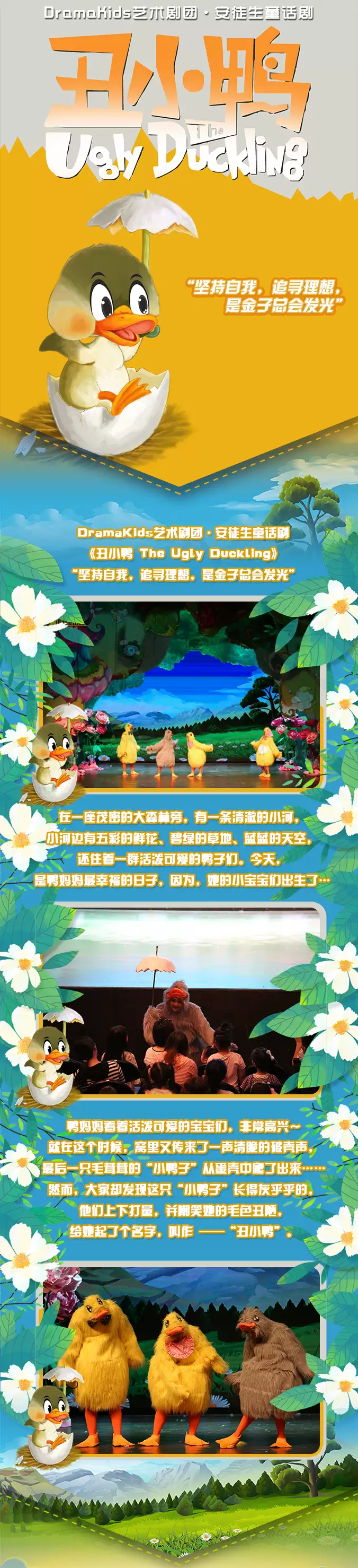 11月16日,梅赛德斯奔驰文化中心-音乐俱乐部,DramaKids艺术剧团·安徒生童话剧《丑小鸭》火热来袭,熟悉的故事不一样的展示,来体验一番吧!