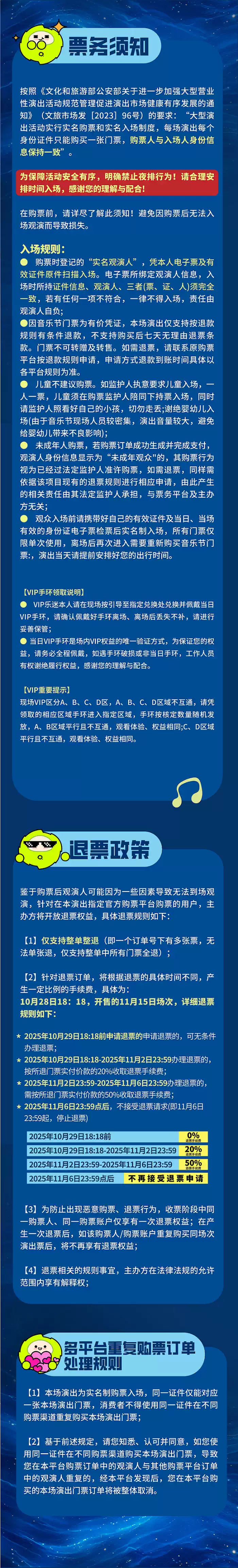 1.购买前请您提前规划好行程,做好相应准备,以免影响您的正常观演,感谢您的理解和配合。