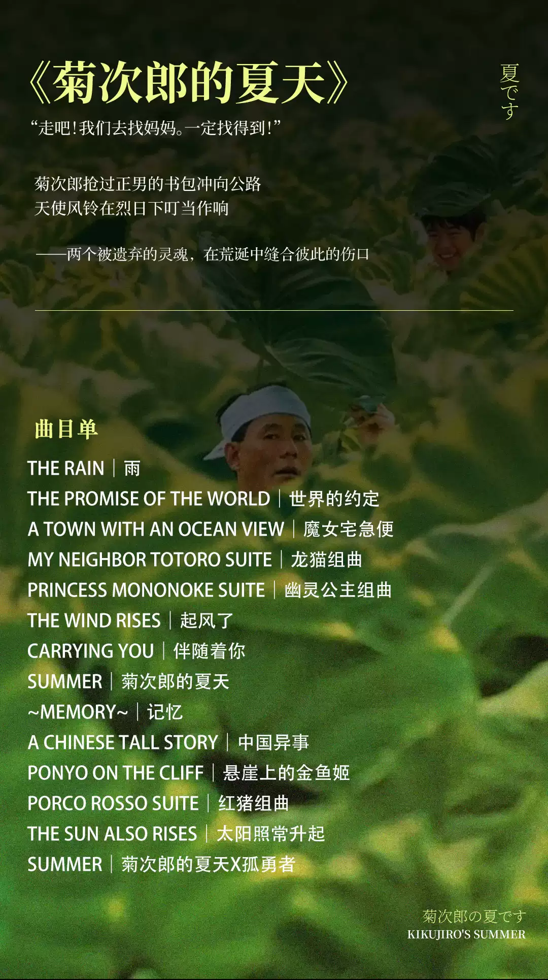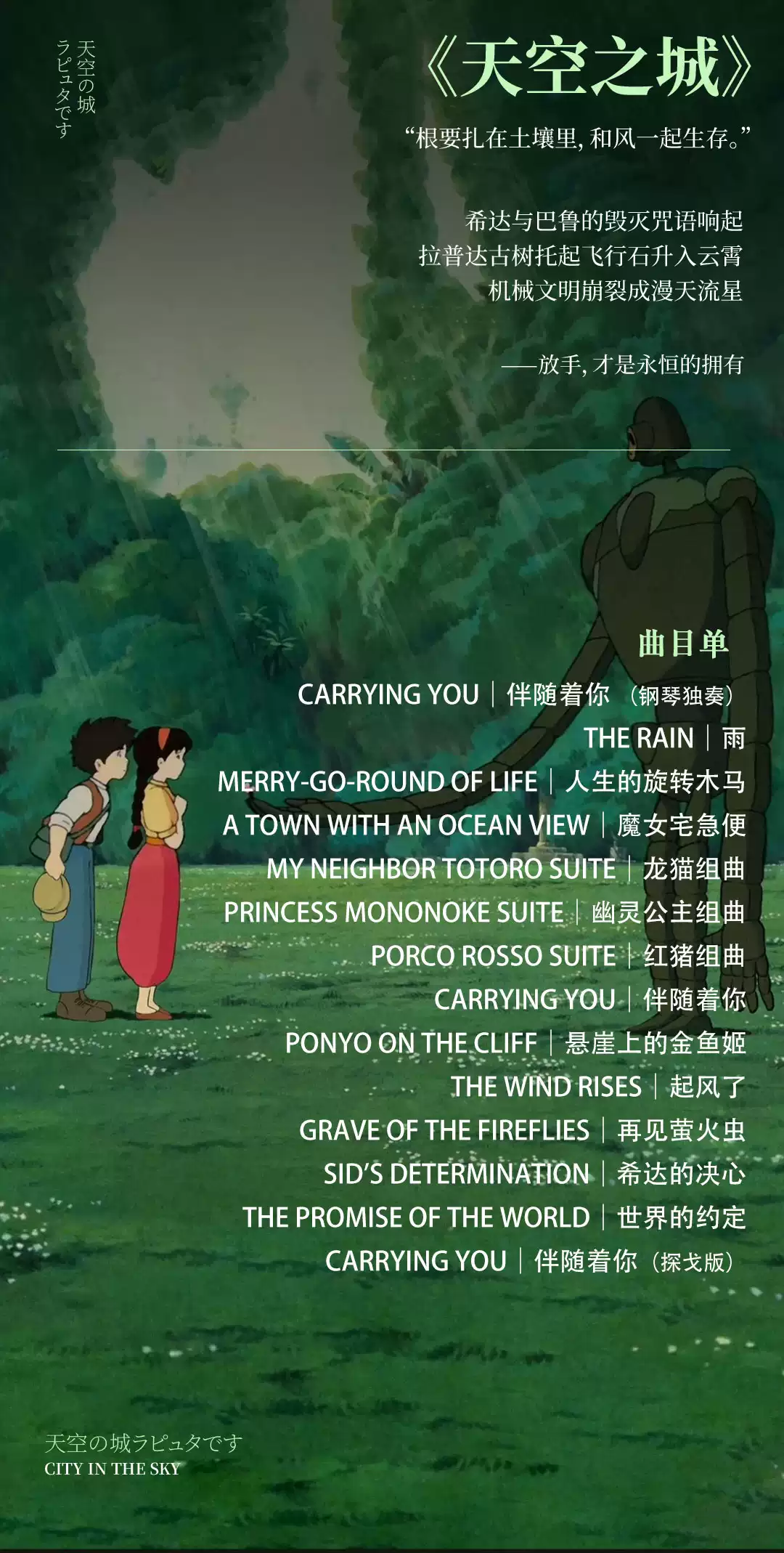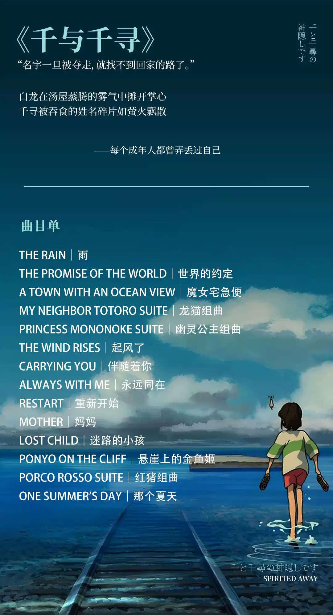 《天空之城》、《千与千寻》、《菊次郎的夏天》、《龙猫》、《幽灵公主》.….