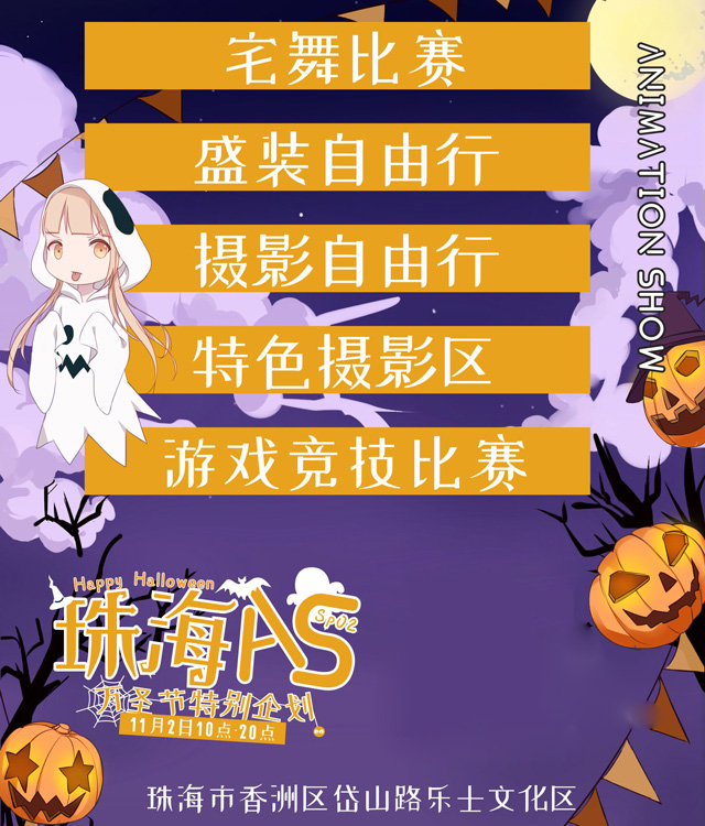 本次AS万圣节特别企划活动精心准备了众多有趣环节,带上你要好的伙伴,来到现场感受一场动漫世界的乐趣吧。