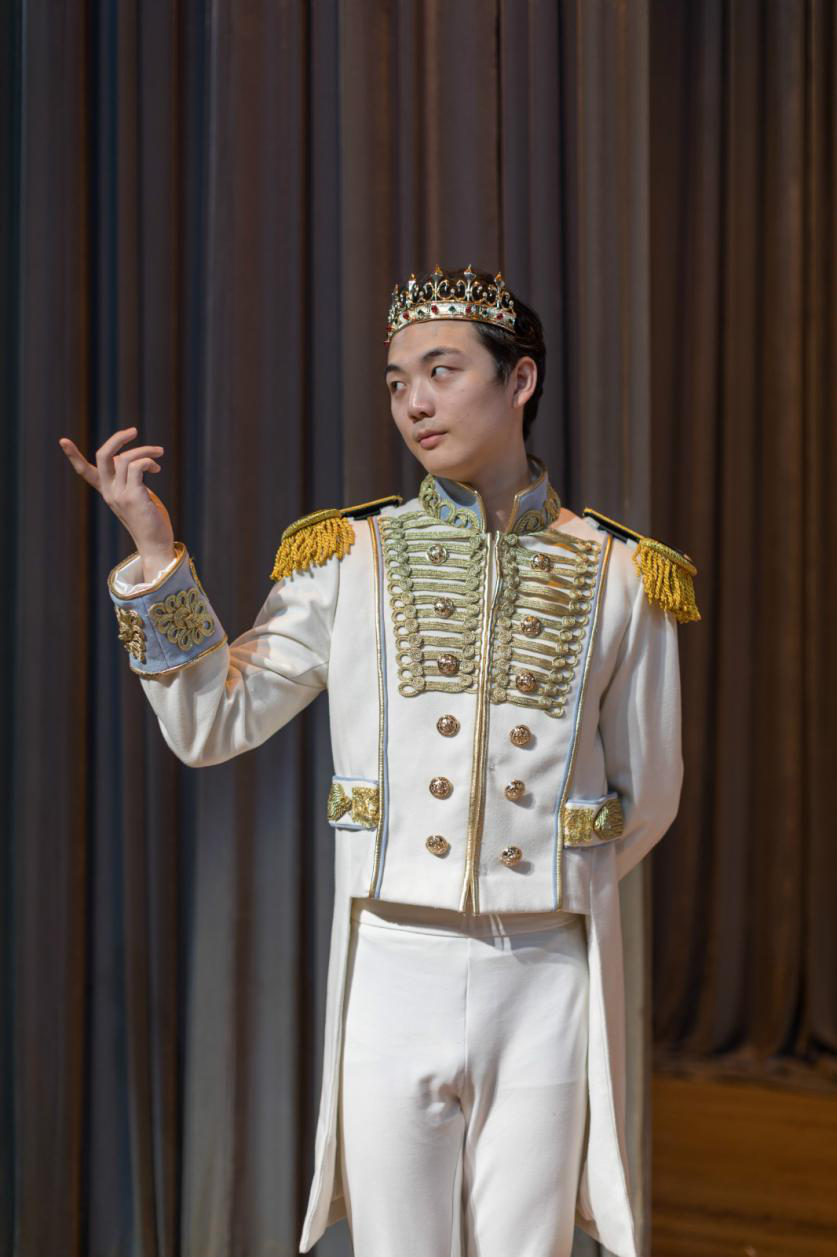 高大帅气又绅士的王子,在晚会上对美丽的辛德瑞拉一见钟情。在辛德瑞拉慌乱离开之后拿到她不小心遗落下来的玻璃鞋,并誓要从百万女子中找到她。