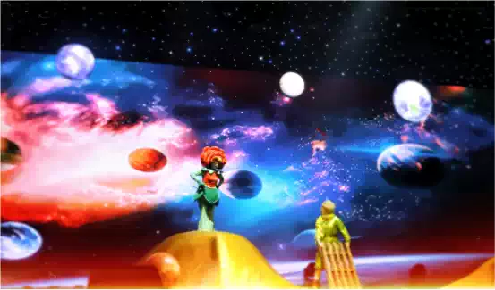 剧目在遵从原著的故事剧情下,借鉴音乐、歌剧与戏剧的艺术特色为主要表演形式,以多媒体技术融合实景为主要视觉呈现方式,结合可爱软萌的角色造型(小王子、玫瑰花、小狐狸、飞行员、国王、商人等)与唯美多元的舞台场景(沙漠、星空、星球、玫瑰花园、麦田等),向观众呈现出一个充满童趣又浪漫温馨、简单淳朴又发人深省的童话故事。