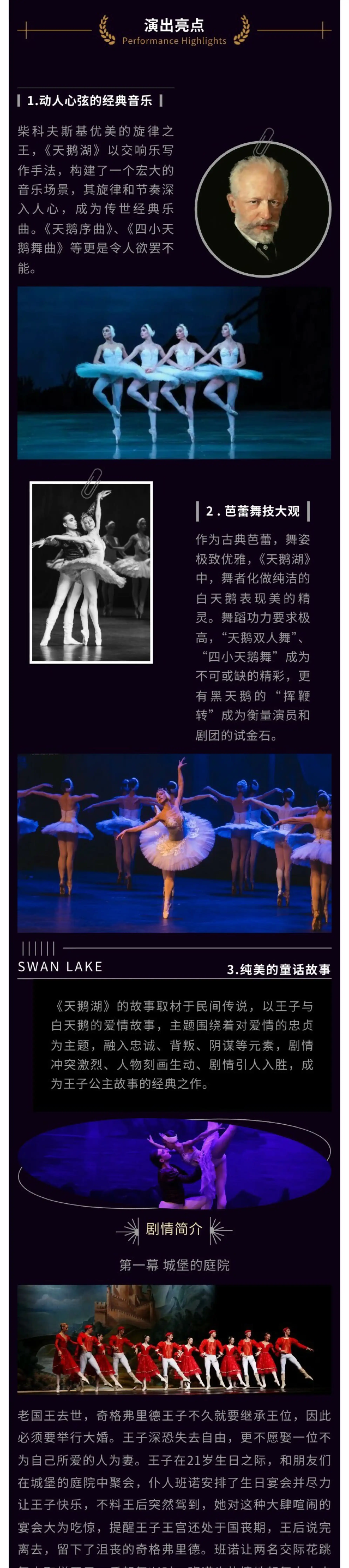 从1895年至今,《天鹅湖》赢得了世界芭蕾舞坛的荣宠,它散发着让世人无法抗拒的纯洁气息、拥有着让舞者奋于挑战的炫目技艺、更引领着世界芭蕾艺术的经典风尚。