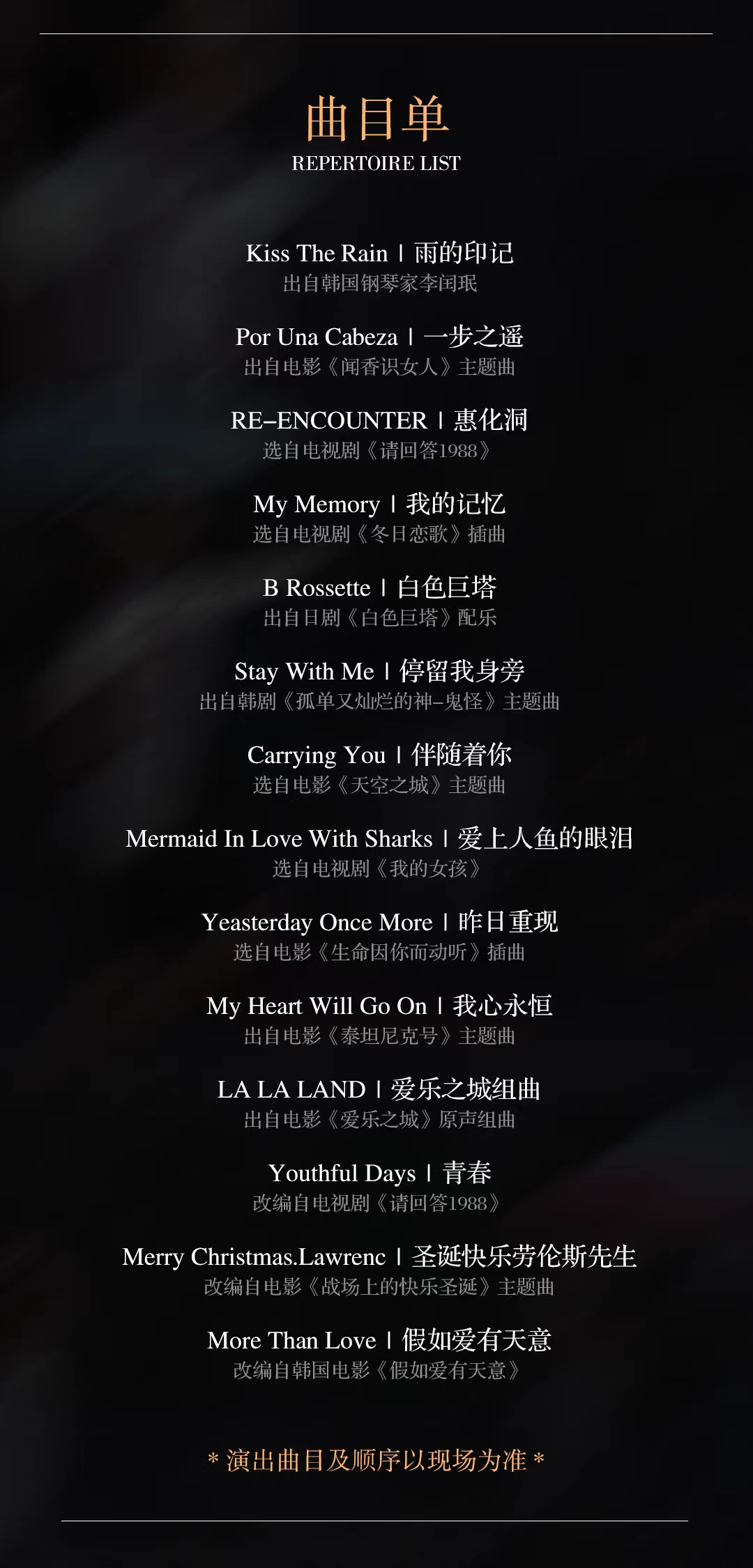 *演出最终曲目及顺序以现场为准*