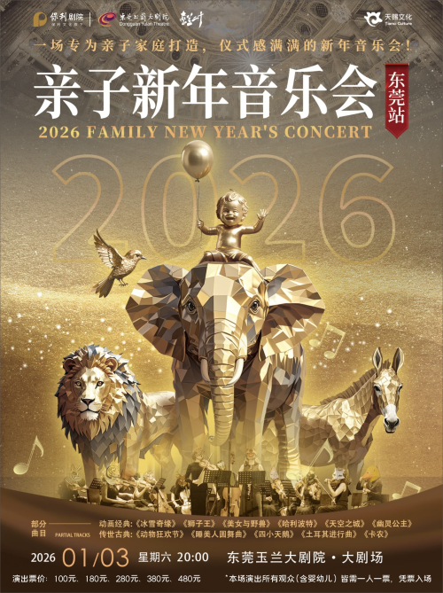 演出时间 2026-01-03 星期六 20:00 演出场馆 东莞玉兰大剧院 演出时长 以现场为准 儿童入场提示 儿童一律凭成人票入场 演出详情