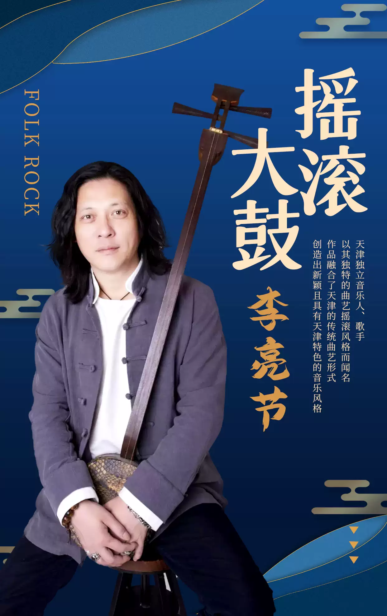 李亮节:天津岩石乐队主唱,天津摇滚曲艺的创始人,创作了很多具有天津特色的音乐,他的音乐将还传统曲艺形式诸如鼓曲相声等与摇滚乐相结合,而形成的一种曲艺摇滚的风格,作品创作上不拘一格,风趣诙谐嬉笑怒骂,但同时也具有浪漫主义情怀,为传统曲艺注入了新鲜血液得到了很多曲艺前辈艺术家的认可,但同时也让天津本土摇滚乐民族化和世界化。
